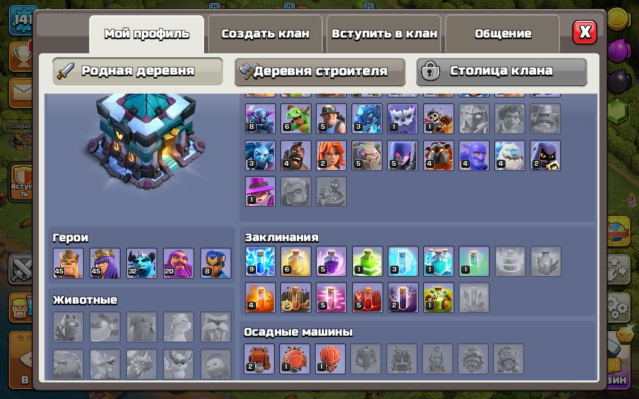 Уровень Ратуши: 13Краткое описание: 13 тх 90% фулл, 327 лвк, 45/45/32/20/8, вкачано снаряжение, описание 👇