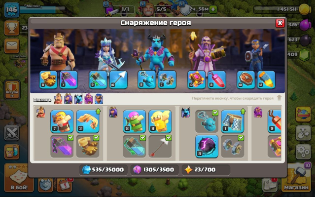 Уровень Ратуши: 11Краткое описание: 13 тх 75% от фулла, 45/55/40/34/21, вкачано снаряжение, 204 лвк, 6 дс, описание 👇