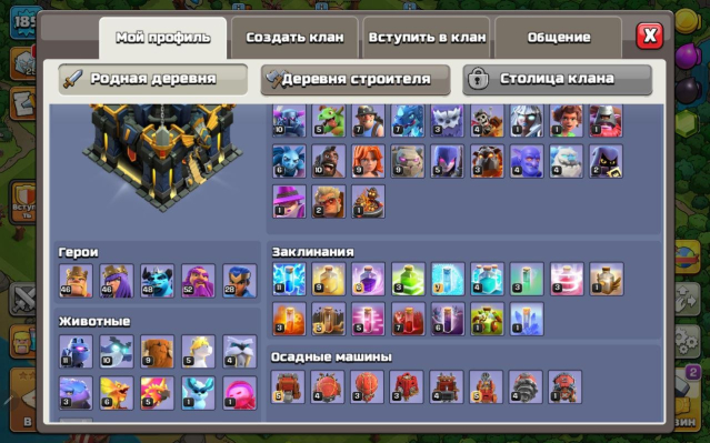 Уровень Ратуши: 17Краткое описание: 17 тх раш, 46/46/48/52/28, 2.2 к гемов, вкачано снаряжение, описание 👇