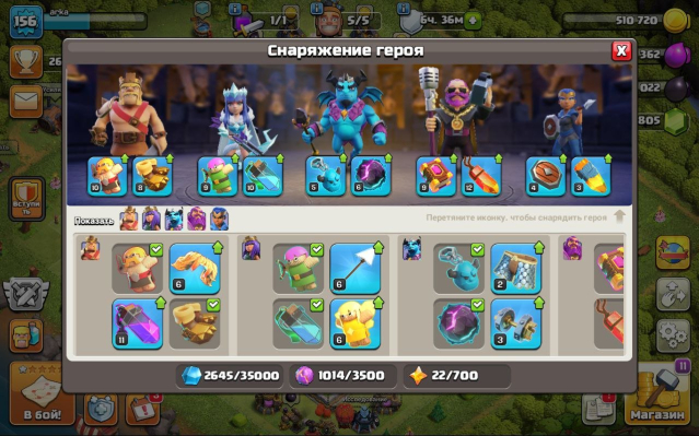 Уровень Ратуши: 13Краткое описание: 13 тх деф от 12-13 тх, 56/61/43/45/16, вкачано снаряжение, 805 гемов, описание 👇