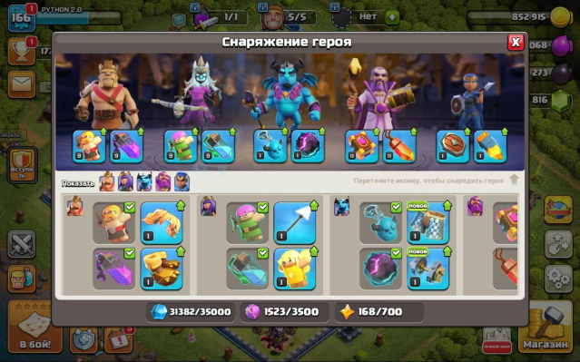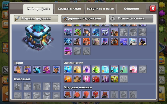 Уровень Ратуши: 13Краткое описание: 13 тх с прокачкой фулл 13-12 тх, 57/61/42/48/12, вкачано снаряжение, 10 дс, описание 👇