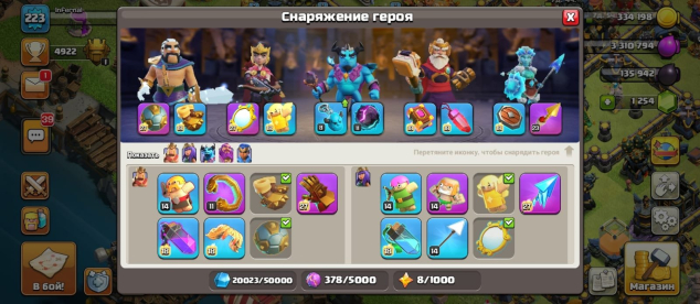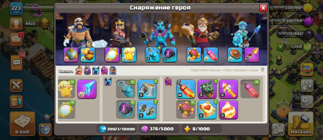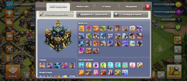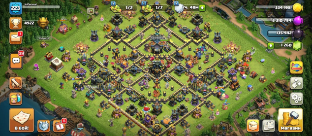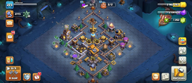 Уровень Ратуши: 17Краткое описание: #YCJUCQLYC 17 TX 99% full, 12 эпических снаряжений, 7 легендарных скинов и 19 золотых + 1200 гемов