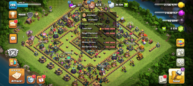 Уровень Ратуши: 14Краткое описание: Th14 full max || only hero left 6th builder || BH 10,nc free || 10 epic cwl medel 685 gems 2250