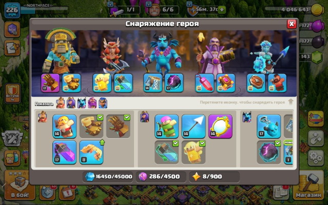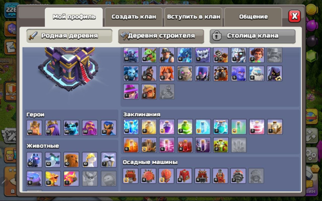 Уровень Ратуши: 15Краткое описание: 15 тх 95% от фулла, 84/82/56/58/31, 531 лвк, 6.1 к гемов, вкачано снаряжение, описание 👇