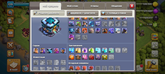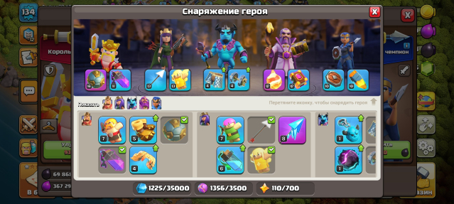 Уровень Ратуши: 13Краткое описание: Быстрая ВЫДАЧА💎134LVL💎13 ТХ💎5 РАБОВ💎3 ЭПИК СНАРЯГИ💎ГЕРОИ 55/55/38/28/15💎1 135 ГЕМОВ💎СКРИНЫ💎