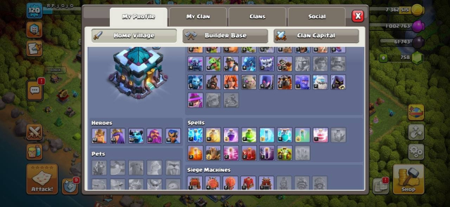 Уровень Ратуши: 13Краткое описание: TH13✅✅Level 120✅✅Heros: 42/43/43/21/18(7 Legendary & 1 Epic Skin)✅✅5 builders✅✅