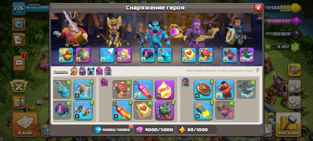 Уровень Ратуши: 17Краткое описание: 🌱17TH [227LVL]🌱🍁9 ЭПИК СНАРЯГ🍁[ГЕРОИ 91/100/75/50]🍁2000+ ГЕМОВ🍁ДЕКОР/СКИНЫ🍁ПЕРЕПРИВЯЗКА🍁