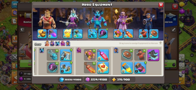 Уровень Ратуши: 15Краткое описание: Max TH15✅✅Level 195✅✅Heros: 80/90/51/56/33(1 Legendary & 3 Epic Skin)✅✅6 builders✅✅