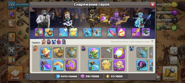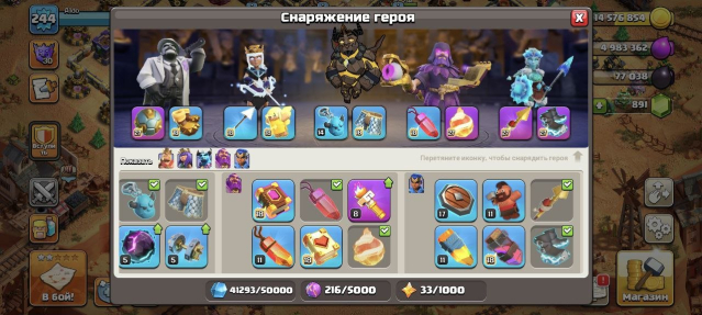 Уровень Ратуши: 17Краткое описание: ⚡️17𝐓𝐇【244𝐋𝐕𝐋】⚡️💎8 ЭПИК СНАРЯГ + ОФОРМА💎🔵【ГЕРОИ 79/100/75/50】🔵 💙19 СКИНОВ💙🍀ПЕРЕПРИВЯЗКА🍀