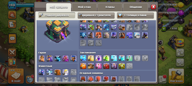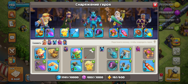 Уровень Ратуши: 14Краткое описание: Быстрая ВЫДАЧА💎140LVL💎14 ТХ💎5 РАБОВ💎5 СКИНОВ💎ГЕРОИ 34/34/27/21/14 💎1793 ГЕМА💎СКРИНЫ💎