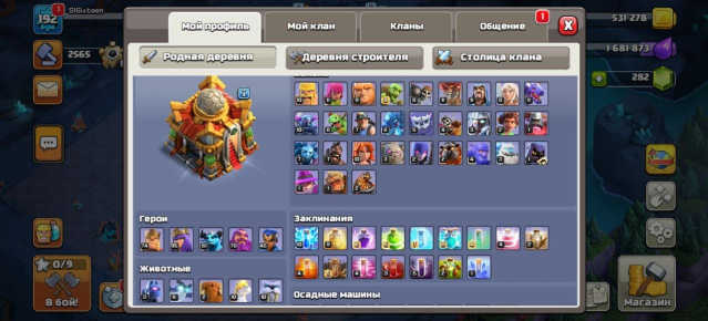 Подробное описание: Хороший тх 16 по зданиям и ловушкам фулл тх 15(есть и прокаченные на тх 16 рикошетные пушки и башни полные лучниц не ставил), забор 14-16, неплохая прокачка питомцев(3 фулл основных питомца), 3 фулл героя, хорошая прокачка снаряги на персонажах(фулл снаряга которая стоит, кроме принца и ботинок на чемпа), в лабе прокачен воздушный микс через драконов(по большинству прокачка войск от тх 15). Крепкая дс 9, открыт 6 строитель. Есть эпические снаряги, 2 скина на кинга, 1 на храна и 1 на чемпа, неплохие волшебные предметы. Всё можно увидеть на скринах либо по тегу ниже.