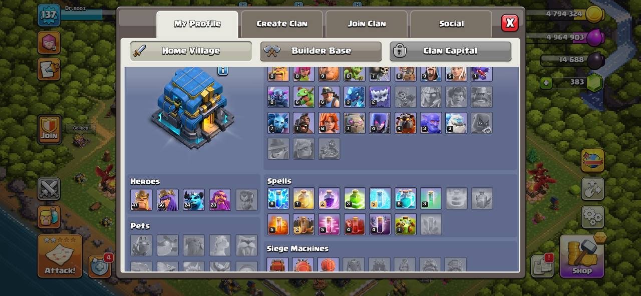 TH12✅✅Level 137✅✅Heros : 47/56/24/23✅✅5 builders✅✅Lvl 41 CR✅✅, 12 TH