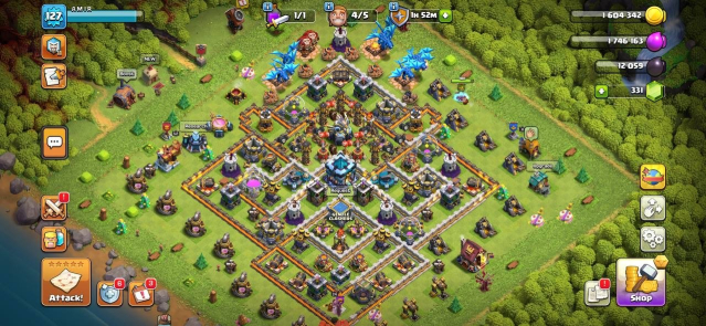 Уровень Ратуши: 13Краткое описание: TH13✅✅Level 127✅✅Heros: 52/52/43/24/8(1 Epic Skin)✅✅5 builders✅✅