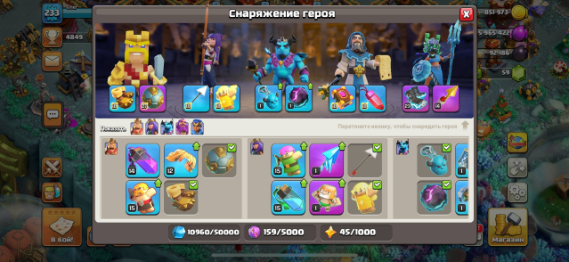 Для снаряги или прокачки помощников на аккаунте есть 2000 гемов!