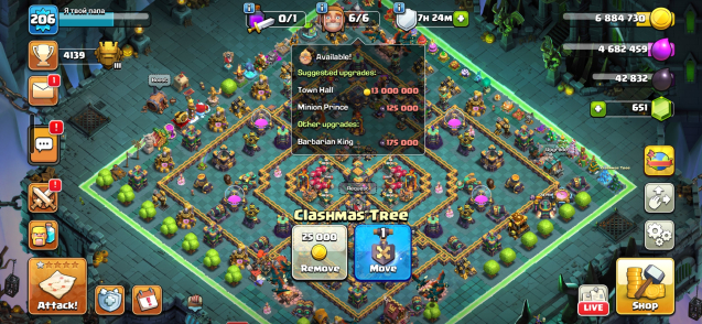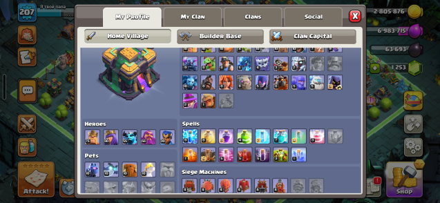 Уровень Ратуши: 14Краткое описание: 14тх (100% full) 207 лвл⚡️🔥скины на героев🔥⚡️Оформление⚡️🔥герои:75/80/55/55/30⚡️🔥тег: #Y8R8RVLV8