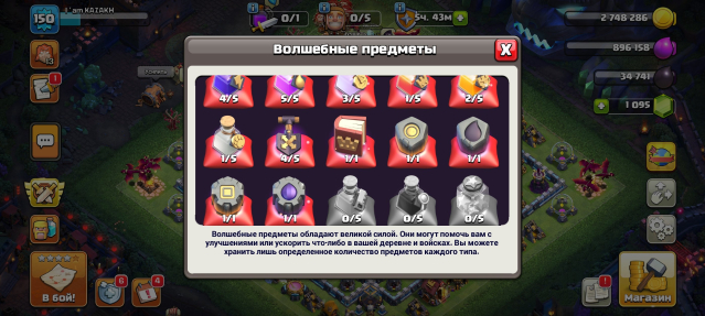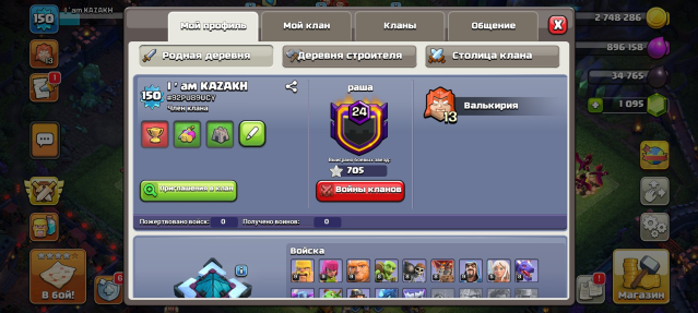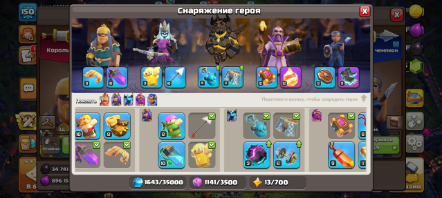 Уровень Ратуши: 13Краткое описание: Быстрая ВЫДАЧА💎150LVL💎13 ТХ💎5 РАБОВ💎2 ЭПИК СНАРЯГИ+ ДОНАТ ОФОРМА💎ГЕРОИ 59/60/40/40/7💎1095 ГЕМОВ💎СКРИНЫ💎