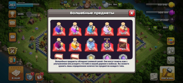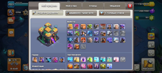 Подробное описание: Фулл тх 14 по зданиям и ловушкам, забор 13-15, неплохая прокачка питомцев, 2 фулл героя, хорошая прокачка снаряги на персонажах(эпик фулл которая стоит, осталось докачать только обычную), неплохая прокачка лабы. Крепкая дс 8. Есть эпические снаряги, 1 скин на квину, неплохие волшебные предметы. Всё можно увидеть на скринах либо по тегу ниже. 503 медали лвк