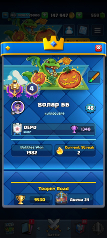 Краткое описание: 💙EVO Охотник + Пушка💙500к Золота ❄ 7 EVO 💦 9500 Кубков 🥏 48 LVL ⚽ 50+ PINS 🧿