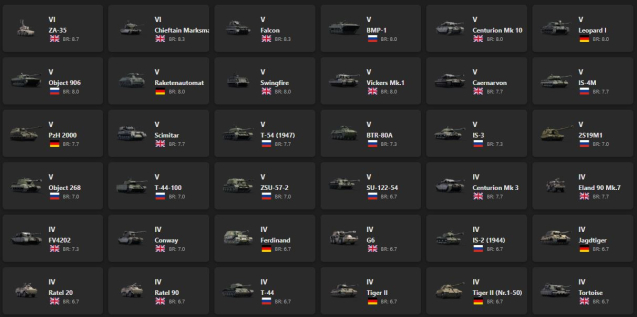 VI - 2, V - 20 ZA-35, Chieftain Marksman, Falcon, BMP-1, Centurion Mk 10, Leopard I, Object 906, Swingfire