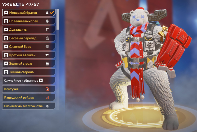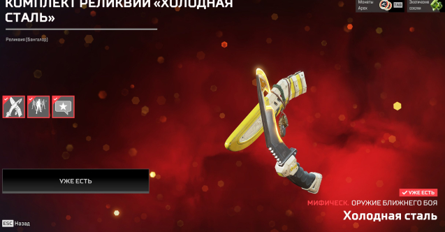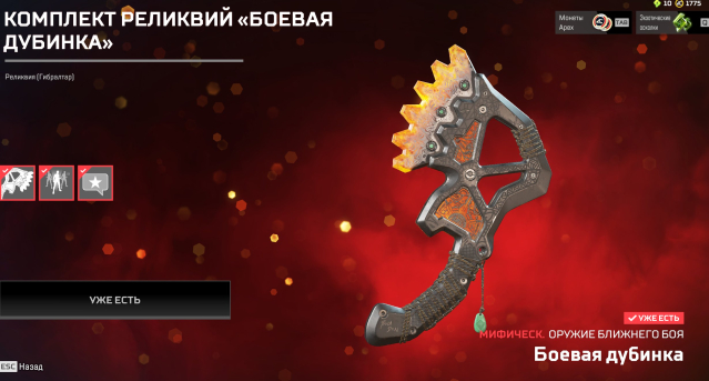 жетоны легенд — 598 000, ценные металлы — 6450, монеты apex -1775, экзотические осколки 10.