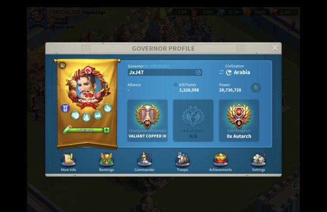 Подробное описание: Kingdom #3083, 2 passport pages available for immigration, 28 golden keys and 7 crystal keys. VIP 8. 17 legendary characters. Civil: Arabia, 2 civilization change opportunities. If you have any other questions, don't hesitate to contact me.
