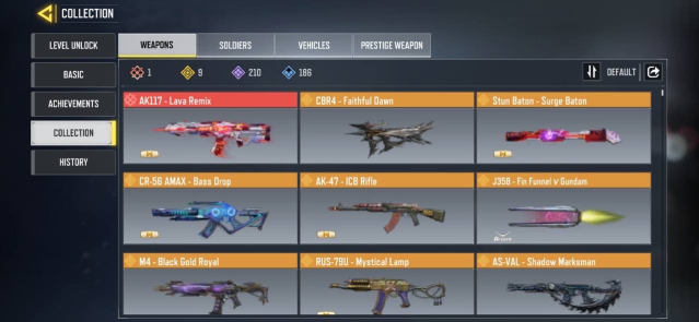🔫 Skins Gun: 1 Mythic — 9 Legendary — 210 Epic — 186 Rare🔫