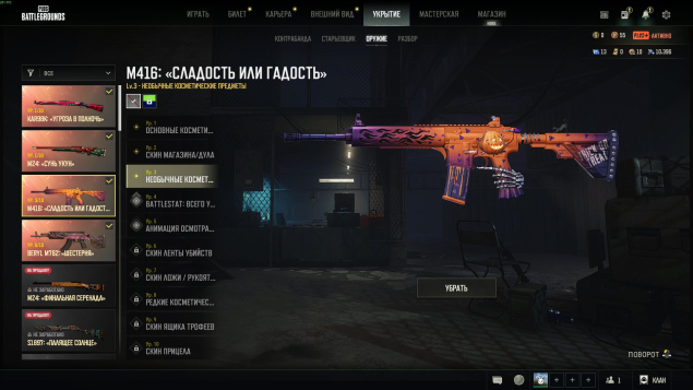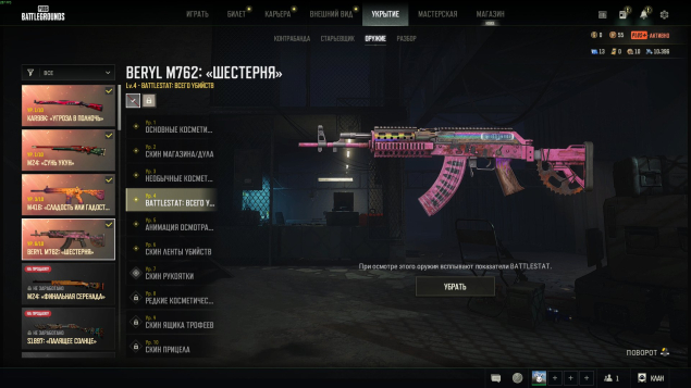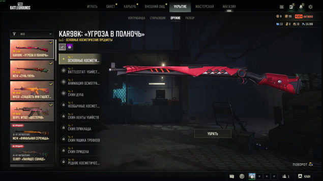 Подробное описание: Самый первый прогрессивный скин Beryl M762 «Шестерня» 6ур… M416 Trick or Treat Halloween Skin 3ур… M24 СУНЬ УКУН 1 ур ВЕСЕННИЙ… Kar98k угроза в полночь 1 ур… есть 13 чертежей + 10.000 палимеров