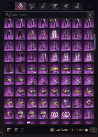 В наличии огромное количество (бесконечное) всевозможных ресурсов на будущие апгрейды либо смену класса, склад полностью забит разнообразными т2/т3 трейтами как на шмот, так и на бижу. Бесконечный запас топовой пвп еды.