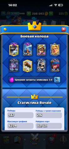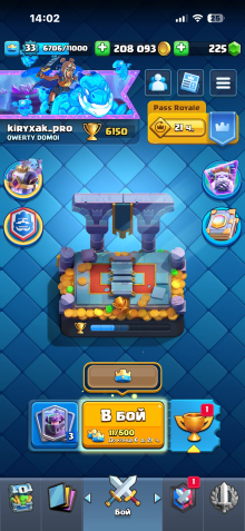 Сила (к): 6150Краткое описание: Аккаунт в клеш рояль хороший акк за такую цену