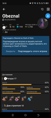 Уровень Ратуши: 17Краткое описание: 【𝟭𝟳 ТХ】🟢【🌟ФУЛЛ 𝟳𝟬%🌟】🟢【62/60/54/28/29】 🟢 【👤ДОН СКИНЫ👤】🟢 【СТЕНЫ 𝟭𝟱-𝟭𝟴𝗹𝘃𝗹⚔️】 ❰💚❱