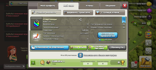Краткое описание: 【⚔️6 LVL | 3185/4500⚔️】【🏰Название — спартанцы🏰】【🥇14-УЧАСТНИКОВ🥇】【WARLOG 74/50】【#UQR2YL8L】