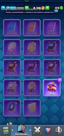 ✔️ 6 карт прокачаны до 15 уровня (включая Башню Принцессу 👑).
