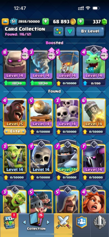 Краткое описание: 7.1 к 🏆, 1 карта 15 лвл + 39 14 лвл, 33 к элитных Джокеров колода хог 2.6, 102 эмодзи, описание 👇