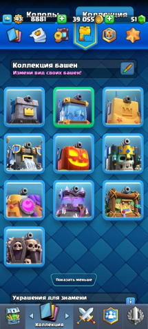 Подробное описание: 9 скинов на башни, 50 эмодзи, несколько из БП, все башни, нет только чемпиона королева лучниц, 8 эволюций + 2 осколка