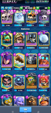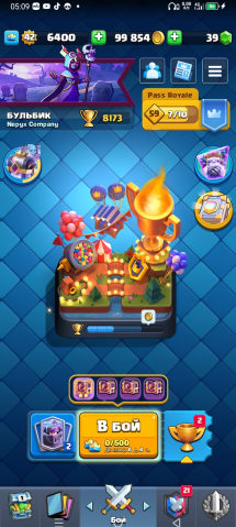 Подробное описание: На акаунте есть 4 Скина на вышку довольно много пинчиков есть немного предметов для прокачки нет карт ниже 10 уровня все карты довольно хорошо вкачены