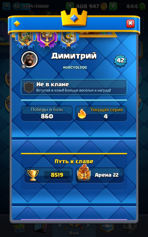 Краткое описание: ❤️🔥 𝐀𝐂𝐂𝐎𝐔𝐍𝐓 | 𝟖𝟓𝟏𝟗 🏆 | 𝟏𝟒 УР. БАШНИ 🏰 | 𝟓 ЭВОЛЮЦИЙ ✨ | 𝟏 КАРТА 𝟏𝟓 УР. | 𝟒 КАРТЫ 𝟏𝟒 УР. 🃏