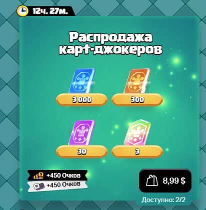 Тип предложения: Карты ДжокерыСпособ пополнения: Через Supercell Store