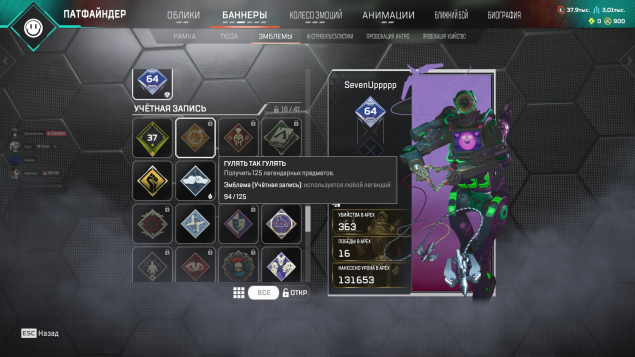 Краткое описание: ❄️𝘼𝙋𝙀𝙓 537 УРОВЕНЬ❄️МНОГО РЕДКИХ СКИНОВ❄️94 ЛЕГ❄️ПОЛНА СМЕНА ДАННЫХ❄️PC/XBOX❄️