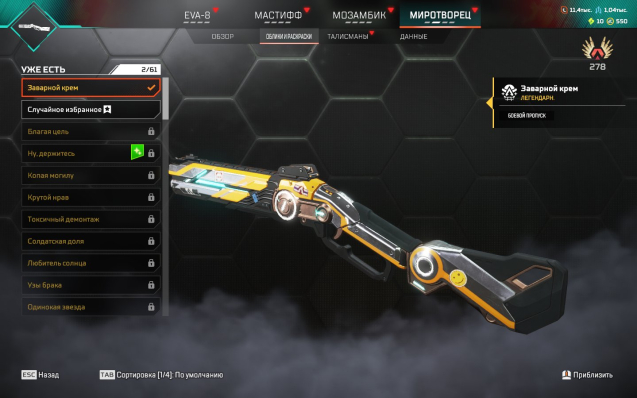🔹 Скины: 11 легендарных, 10 фиолетовых