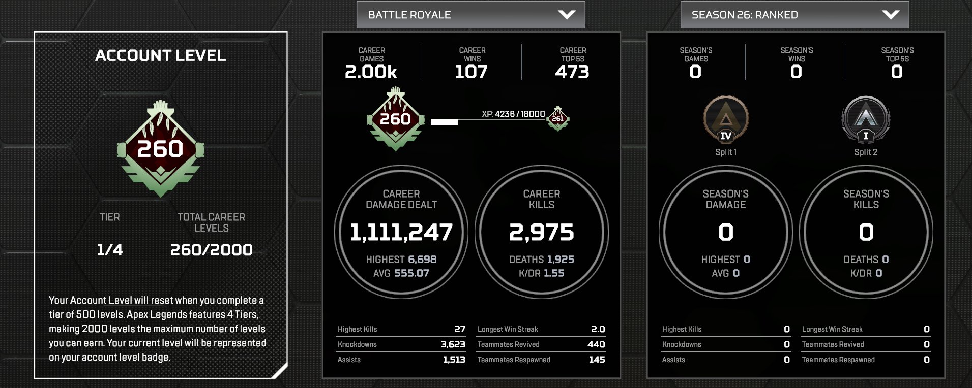 — RANKED season 26: SPLIT 1: rookie 4, SPLIT 2: silver 1 ( 478/750 RP )