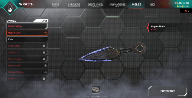 — 2 heirlooms = WRAITH KUNAI + RAPTOR'S CLAW