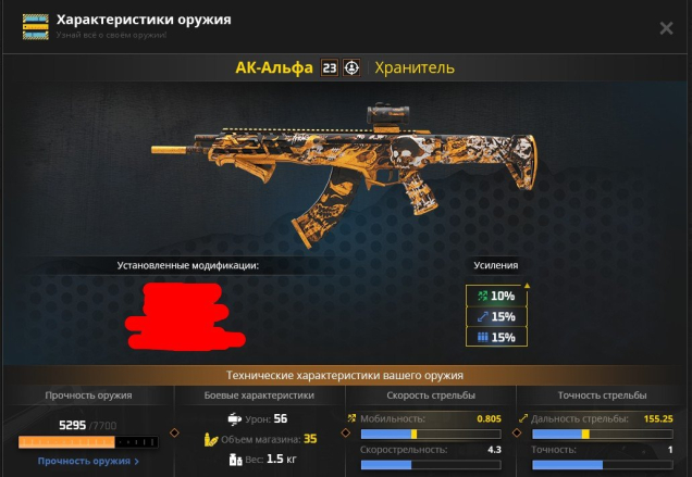Краткое описание: Ак Альфа 23 на 1 мобилку, 2 даль и 2 пт. Скин Хранитель. цена торг — лс