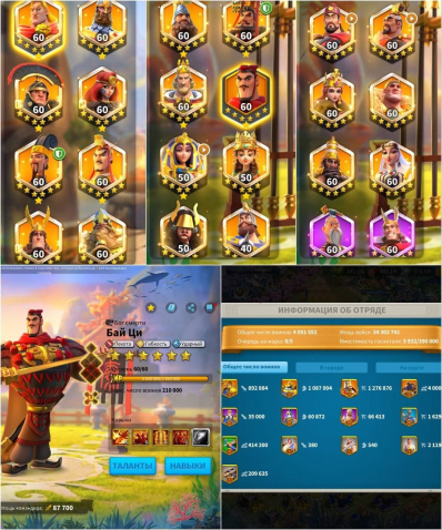 🔸Экспертные командиры: 22 (Бай Ци 5511, Хо 5411) +очень много почти экспертных командиров с сундуков / открыто 110 командиров