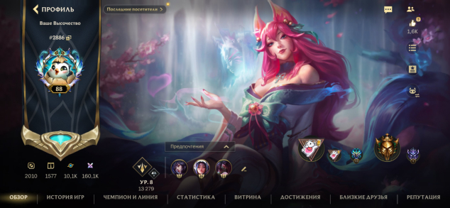 Подробное описание: Все статы будут в приложенных фото снизу. Сервер РУ. Максимальный рейтинг Алмаз 4. Я не хочу чтобы аккаунт просто так пропадал, поэтому максимально честно обязуюсь передать данные. На балансе 625 корсов. Скин «дух цветения Ари» и «звездная защитница Акали», так же много «фиолетовых скинов» из сундука поро.