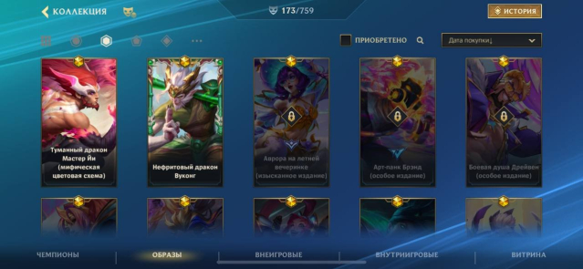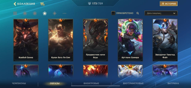 Краткое описание: Личный аккаунт 173 скина (2 мифика, 14 легендарок, 173+ всех скинов) включая Зед «из кланов»