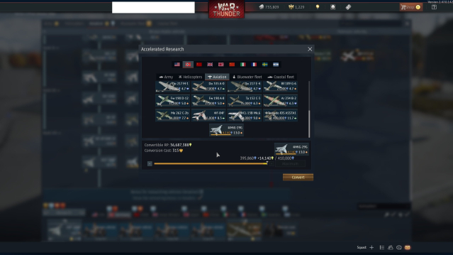 Boxer MGS (Германия, 7ой ранг), F-106A (США, 6ой ранг), HF-24 (Британия, 6ой ранг), MiG-21 PFM (СССР, 6ой ранг), BT-7A (CCCР, 2ой ранг), KV-7 (СССР, 3ий ранг), T-34-85 Partizan (CCCР, 3ий ранг)