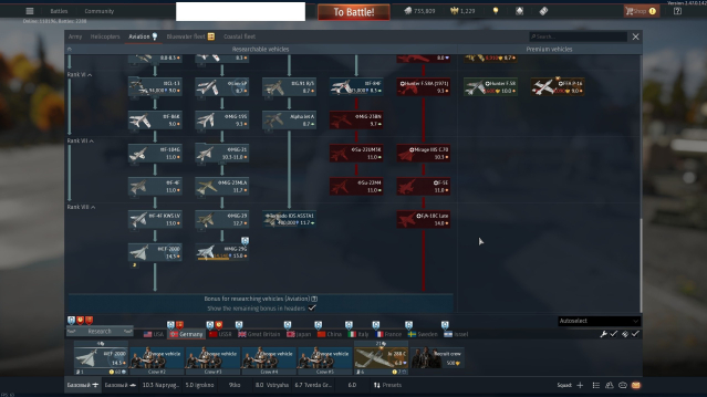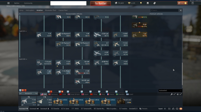 SU-33 (СССР, 8ой ранг), JF-17 (Китай, 8ой ранг), A-4E Early (США, 6ой ранг)