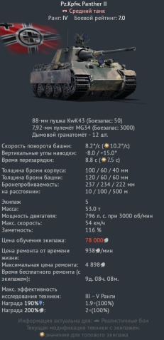 Подробное описание: На аккаунте есть эксклюзивный танка рейтинга 7.0 «Panther Ⅱ»