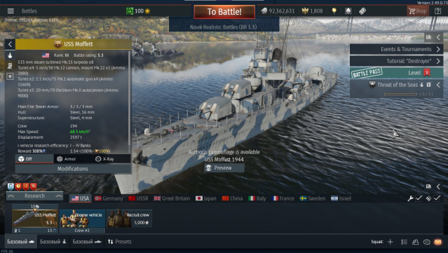 USS Moffett Супер Скорострельный Топ Эсминец Для Фарма Водной Марафонной Техники и Серебра.