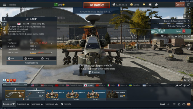 AH64DJP прокачен до 16 хелфаеров 2 + 4 ракеты воздух воздух ATAS AIM 92. У этого вертолёта есть радар с режимом обнаружения воздушных целей.
